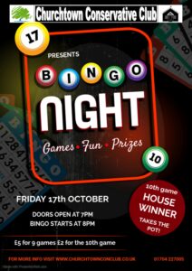 Get Ready for Bingo Night at Churchtown Conservative Club! Hello members and friends of Churchtown Conservative Club! We are thrilled to invite you to our next Bingo Night, which sorry is a week later than previously advertised and on Friday, 17th October2025. Doors Open: 7:00 PM Games Start: 8:00 PM This is the perfect chance […]