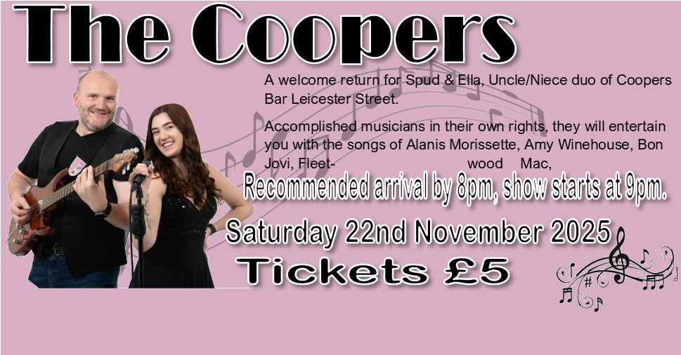 The Coopers 8pm for 9pm Saturday 22nd November 2025