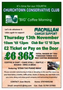 Fourth Macmillan BIG Coffee Morning 10am Thursday, 13th November 2025
