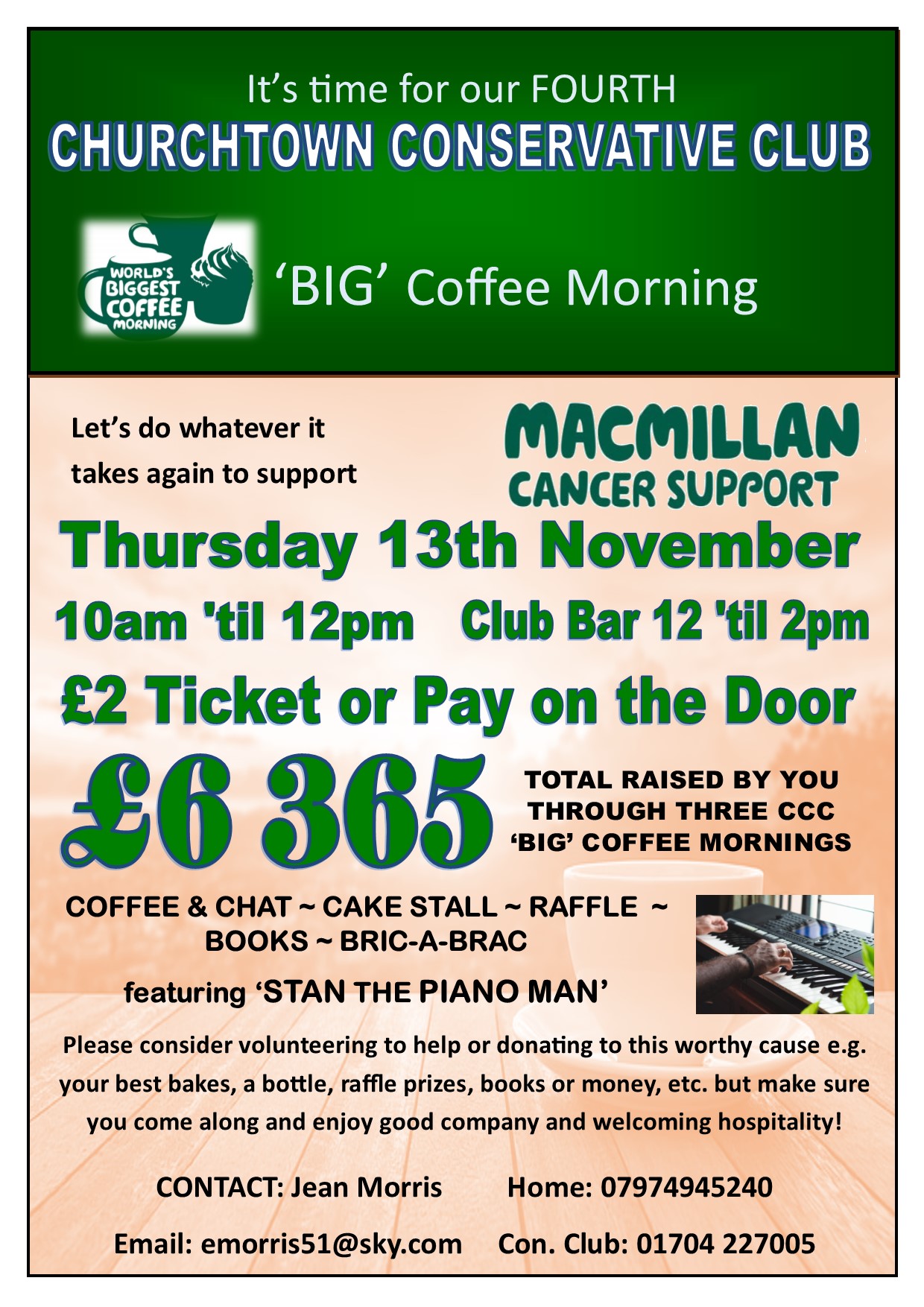 Fourth Macmillan BIG Coffee Morning 10am Thursday, 13th November 2025