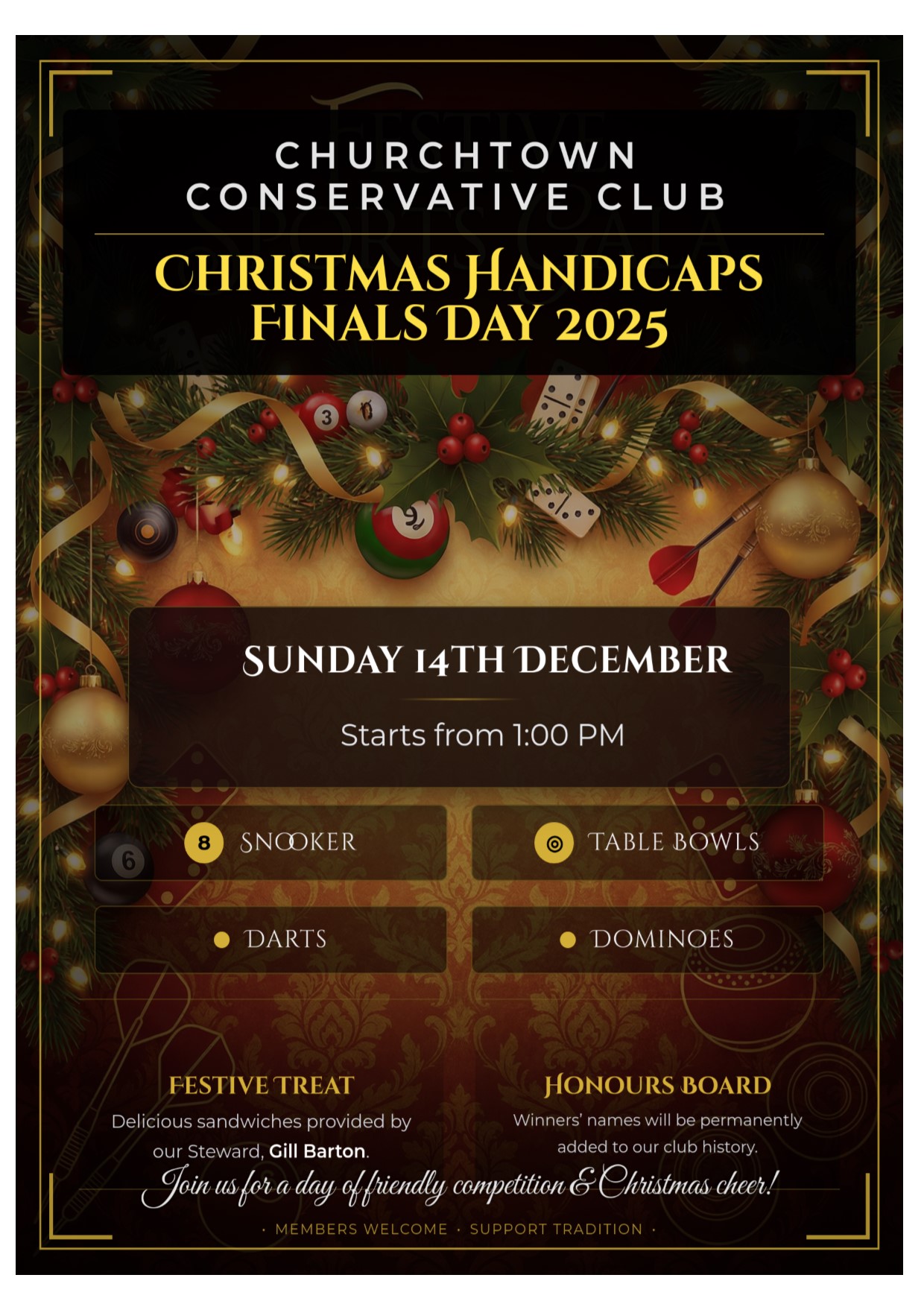 1pm Sunday 14th December 2025 Christmas Handicaps Finals 2025