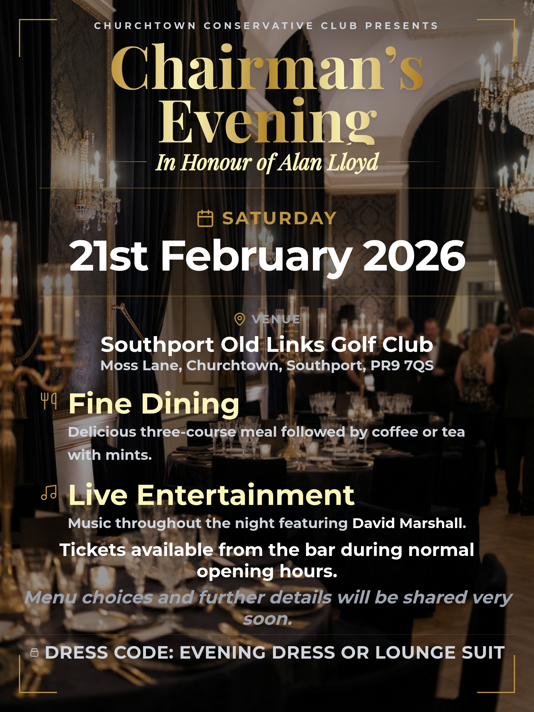 The Chairman’s Evening Saturday 21st February 2026
