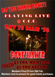 We are delighted to announce the return of Boneshaker, who will be rocking the stage live at Churchtown Conservative Club on Saturday, 28th March 2026, delivering two AMAZING live sets!