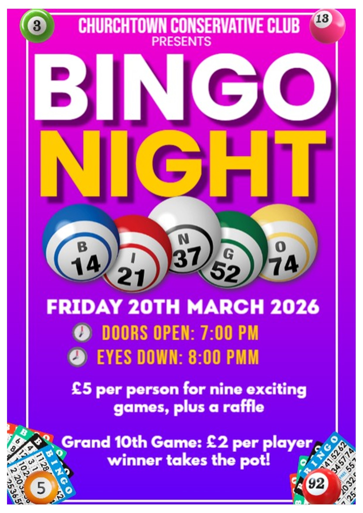 March 2026  Bingo Night at Churchtown Conservative Club!