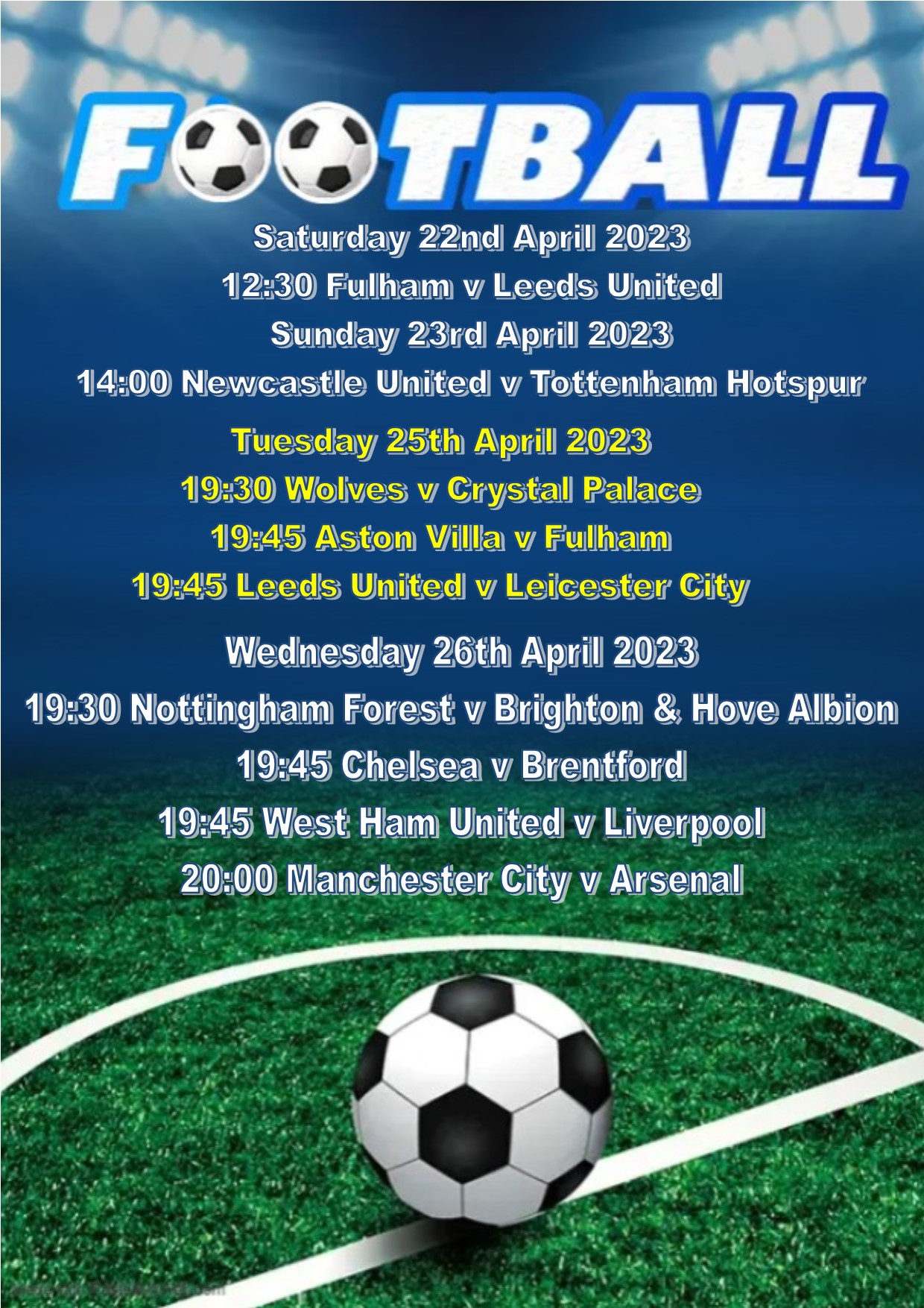 Football from 22.04.2023 For Gill